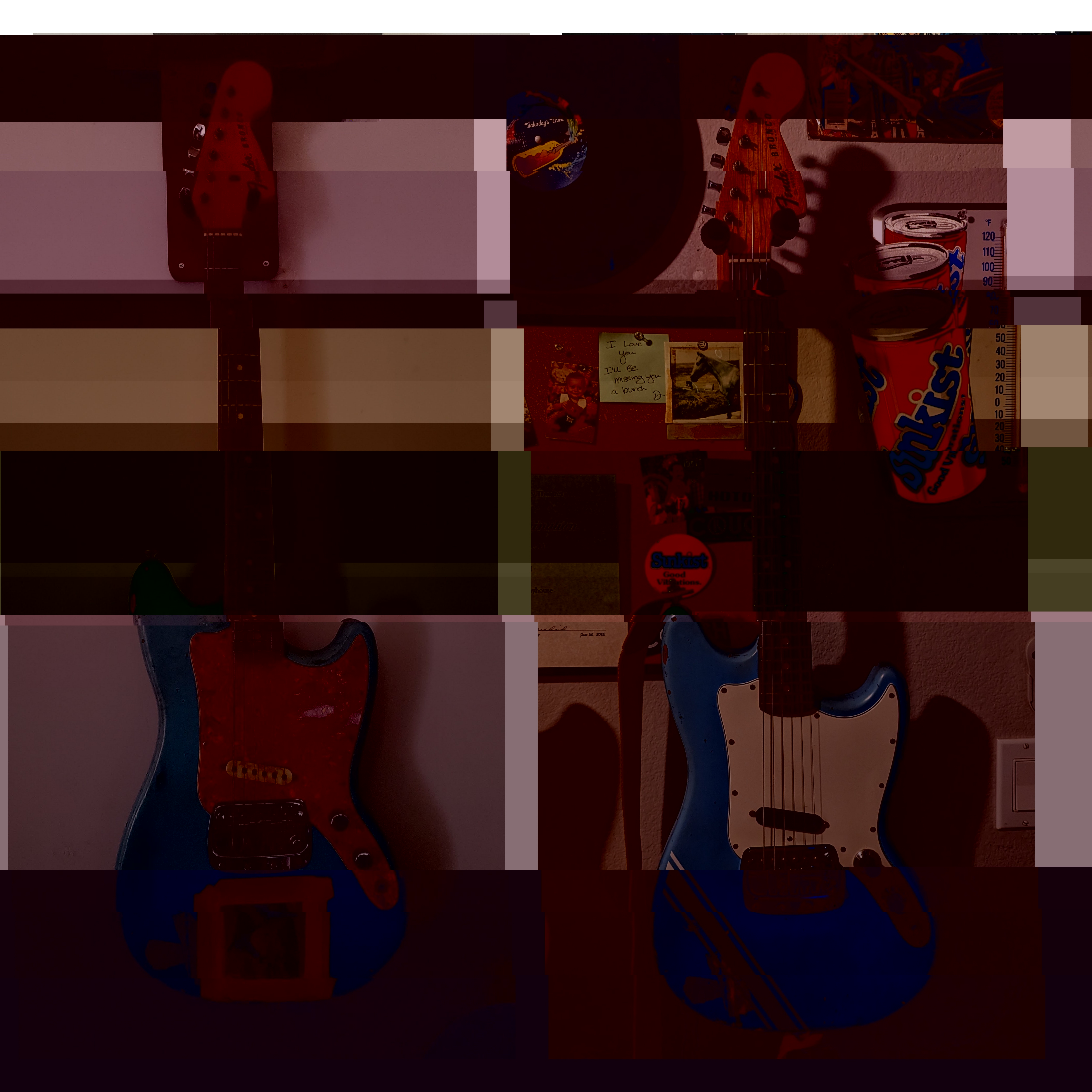 the second comp stripe i ordered came in (the first never showed up 6 weeks on, so i cancelled), so i placed it over the weekend. the completed before/after for this guitar's journey:
